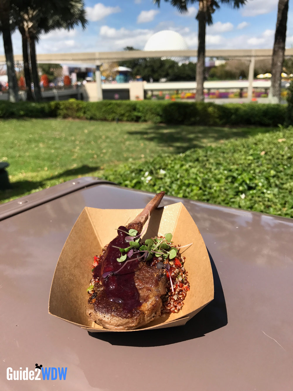 Lamb Chop with Quinoa Salad and Blackberry Gastrique (The Berry Basket): The Australian lamb chop is one of my family’s favorite items from the Food & Wine Festival, and this different take on the chop definitely lived up to the other dish’s expectations. The blackberry gastrique gives is a sweetness that I don’t love as much as the mint pesto from the Australia version, but the lamb was delicious and perfectly cooked.