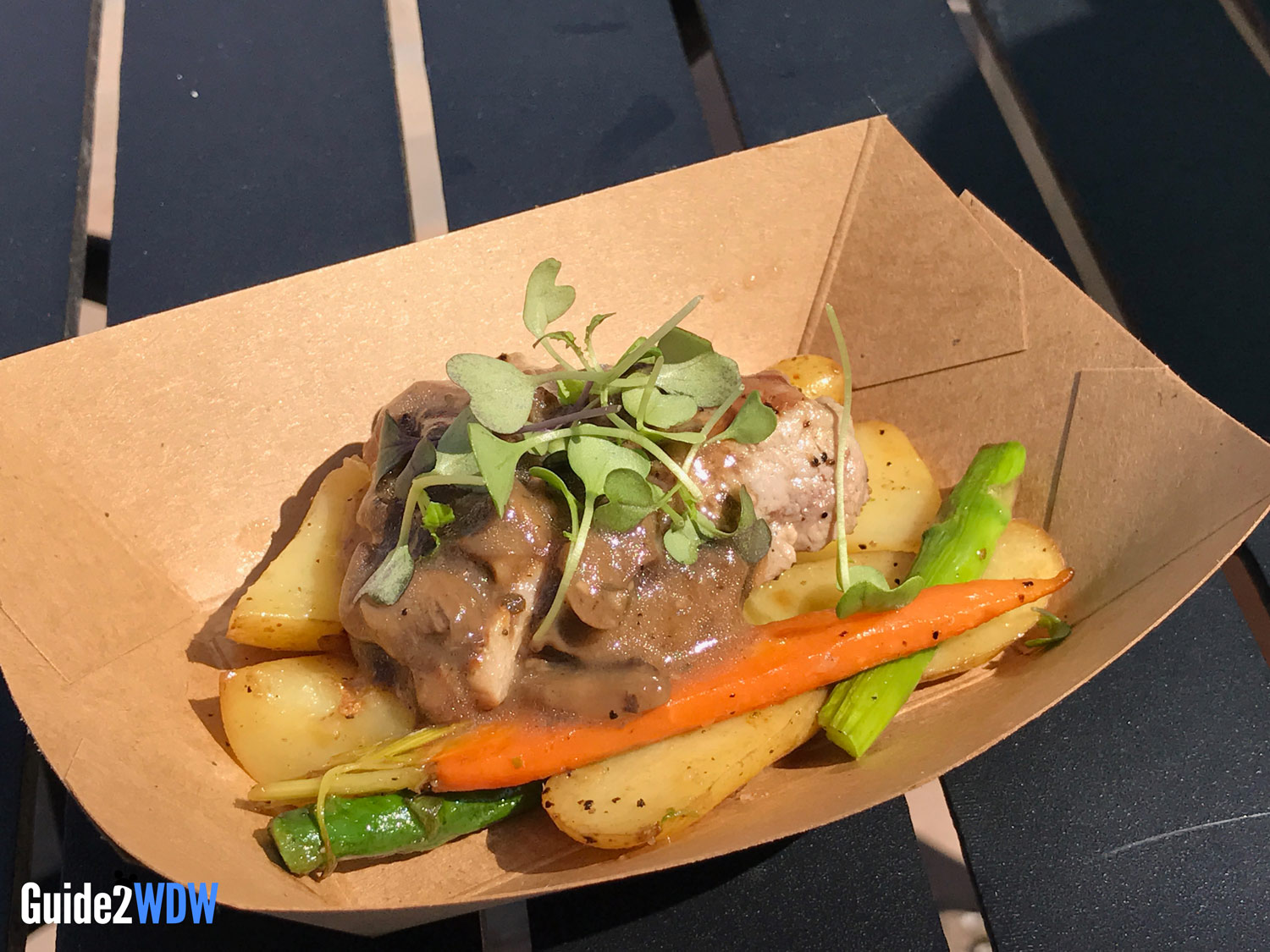I ended up trying 10 different dishes and drinks during my visit. Maybe it’s because my expectations were sufficiently low, but this was some of the best Epcot festival food I’ve had, and in some cases the Flower & Garden offerings outshone Food & Wine. My parents, who have been trying the Flower & Garden dishes since they were introduced a few years ago, also were pleasantly surprised by the food this year, and we had no complaints about the portions. I thoroughly enjoyed pretty much everything I tried with one exception. First, let’s focus on the good stuff: