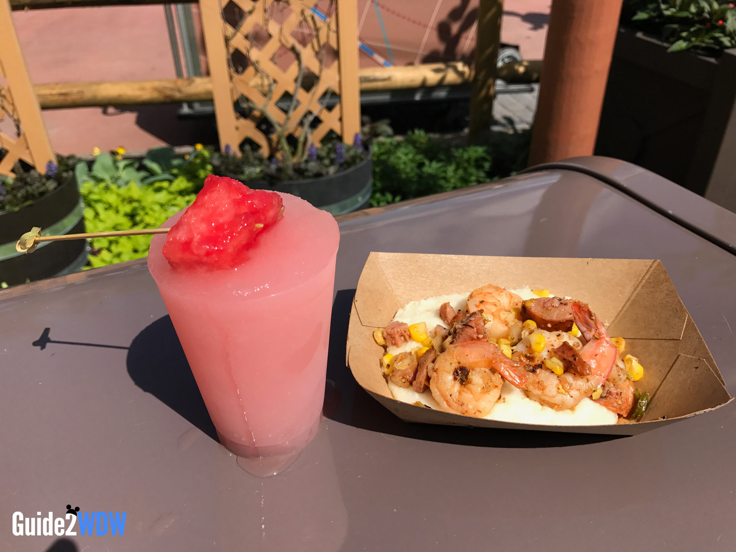 Frozen Watermelon Slush – Non-Alcoholic (Florida Fresh): It was unexpectedly hot during my first day at Epcot, so I jumped at the idea of a cool, refreshing Watermelon Slush. This was delicious: you could really tell the difference between this and a slushee that’s flavored with artificial syrup. I’m also glad I didn’t go for the alcoholic version, as the cup size is on the small side.