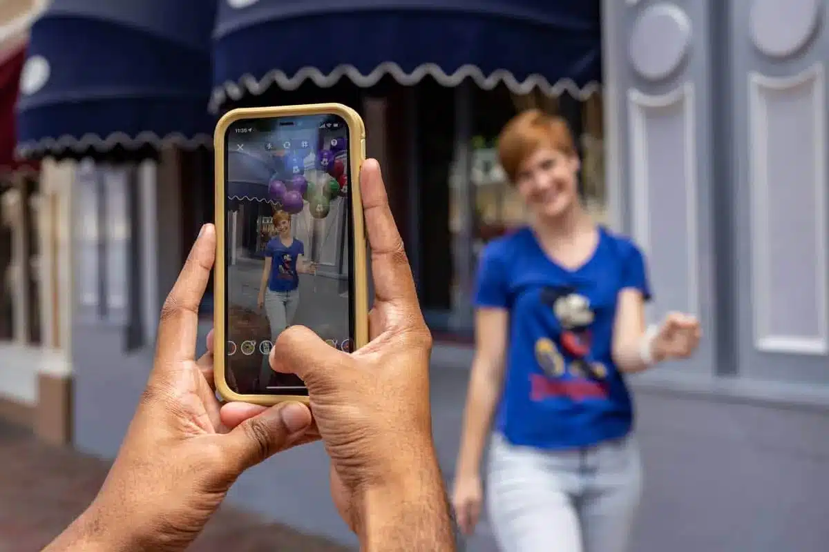 PhotoPass Lenses use augmented reality to add neat effects to your phone’s camera, such adding a digital Mickey Pretzel to your picture, portraying fireworks behind Sleeping Beauty Castle, or letting you take a selfie with Grogu. This feature can make for some very fun and silly pictures.