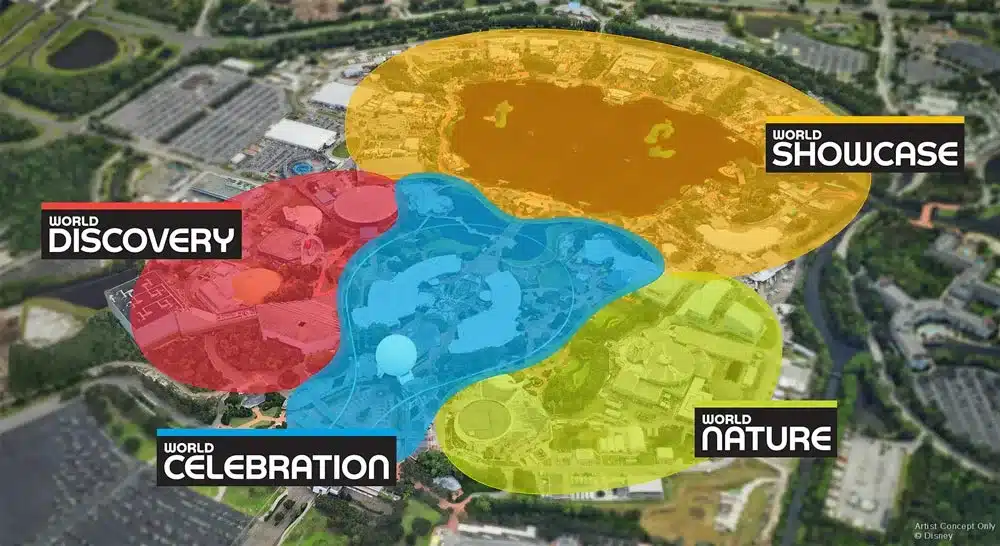 Here’s how everything will be divided once Future World undergoes its name change.
