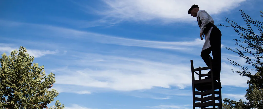 Serveur Amusant -A hilarious and impressive acrobatic display featuring a tower of stacked chairs.