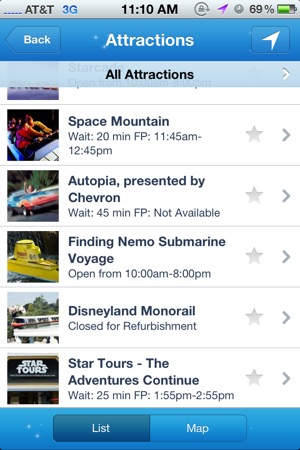 Having accurate wait times always available to you is an extremely powerful tool. My party was able to see that Fastpasses for Star Tours were starting to run out faster than all the other attractions while waiting in line for Finding Nemo, so after going on that ride, we zipped straight to Star Tours and got our next Fastpasses. This app definitely can save you some time at Disney World or Disneyland.