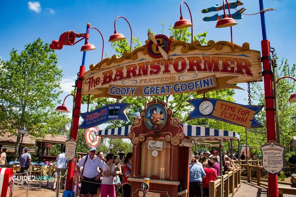 - The Barnstormer sits on the site of former attraction Grandma Duck’s Petting Farm. This petting zoo was part of Mickey’s Birthdayland, and existed from 1988-1996.