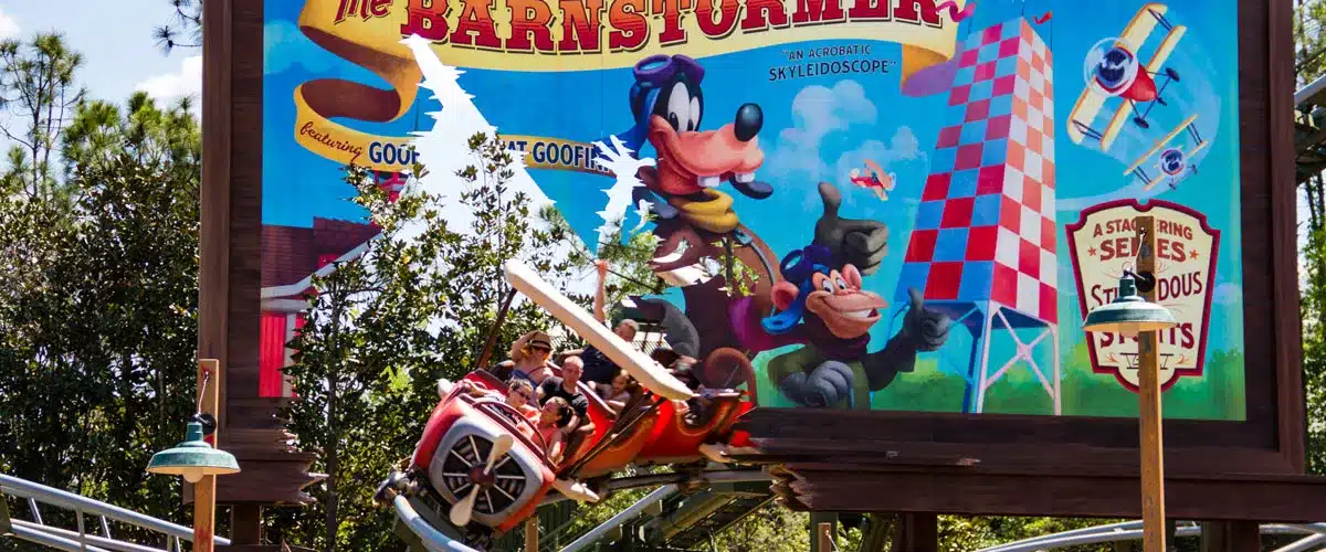 With only one hill and a short ride length, the Barnstormer featuring the Great Goofini is a fantastic first roller coaster for kids. Other coasters at the Magic Kingdom like Seven Dwarfs Mine Train or Big Thunder Mountain might be a bit too intimidating for a small child who has never been on a roller coaster before. As Magic Kingdom’s only junior roller coaster with a heigh restriction of only 35 inches, the Barnstormer is ideal for a kid to dip their toe in the world of thrill rides. With plane-shaped roller coaster cars, a track that goes through a billboard, and a fun queue featuring the Great Goofini’s treasured props, the Barnstormer is a very solid ride for kids.