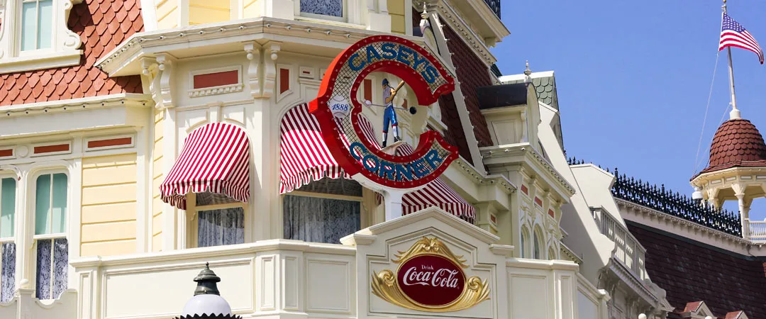 Casey’s Corner is a great place for Disney World guests to grab lunch and snag a seat on Main Street for the afternoon parade.