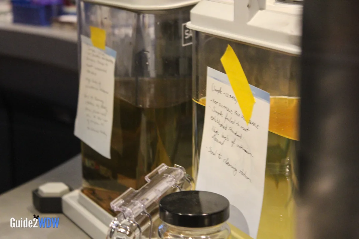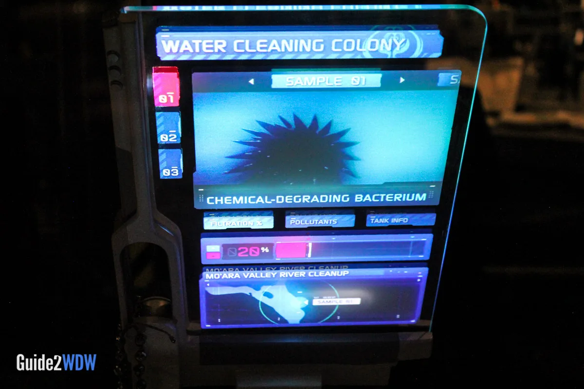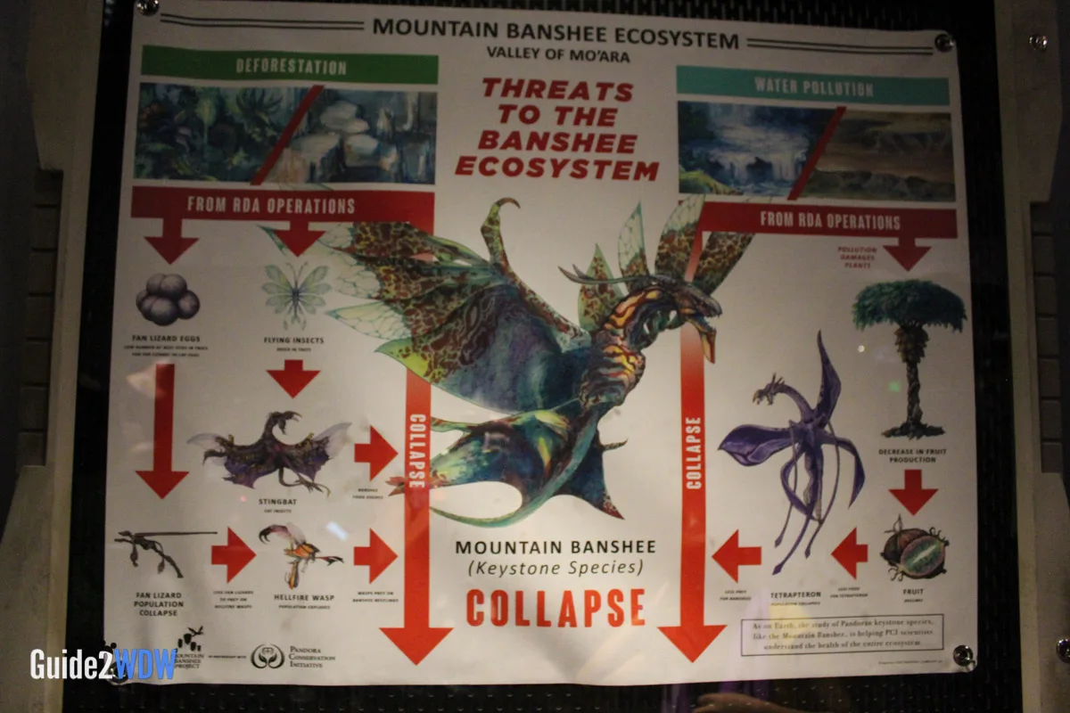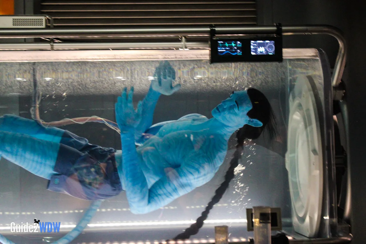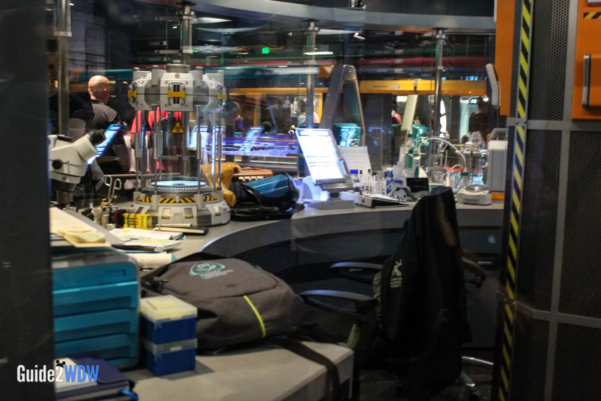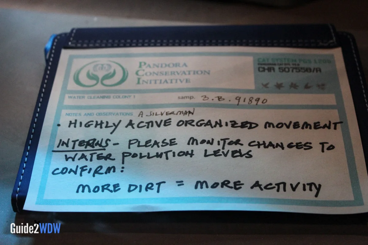 When you enter the queue for Flight of Passage, you initially walk into something that looks like a cave with lots of plants. As you go, you find an old research facility that plants have overtaken, so it’s a mixture of the natural and manmade. Have you ever seen pictures of those old theme parks that get overrun by plants because no one has been there for awhile? It feels a little bit like that. Then as you keep going, you eventually get to the inner research facility where you see an actual Avatar along with notes and experiments of the researchers. The entire queue is really fascinating! I found myself taking a ton of pictures of the queue because there’s so much to look at.