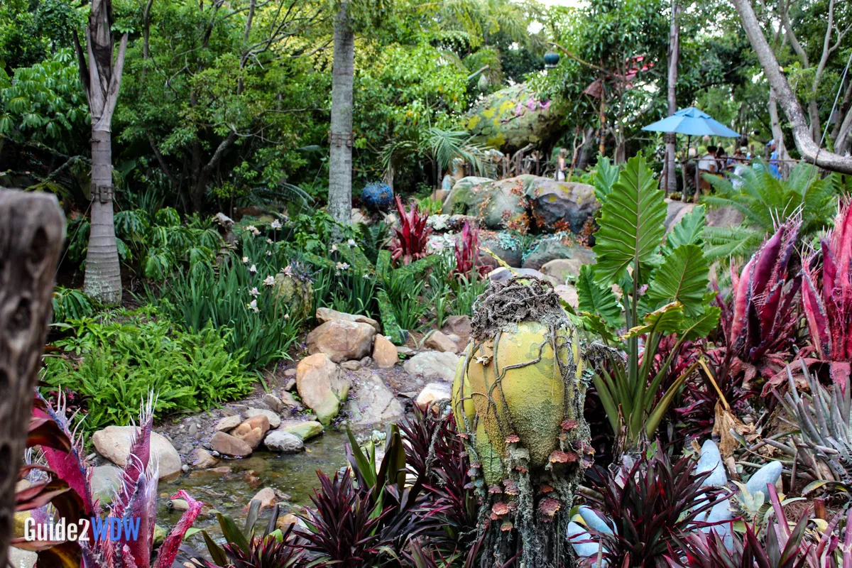 While Pandora – The World of Avatar features two attractions, shopping, and dining, the land itself is as much of a draw, if not moreso. The scenery is absolutely stunning, and unlike any other theme park land. Walt Disney Imagineering deftly mixed the natural plant life with Na’vi plants, so it really feels like you are in Pandora.
