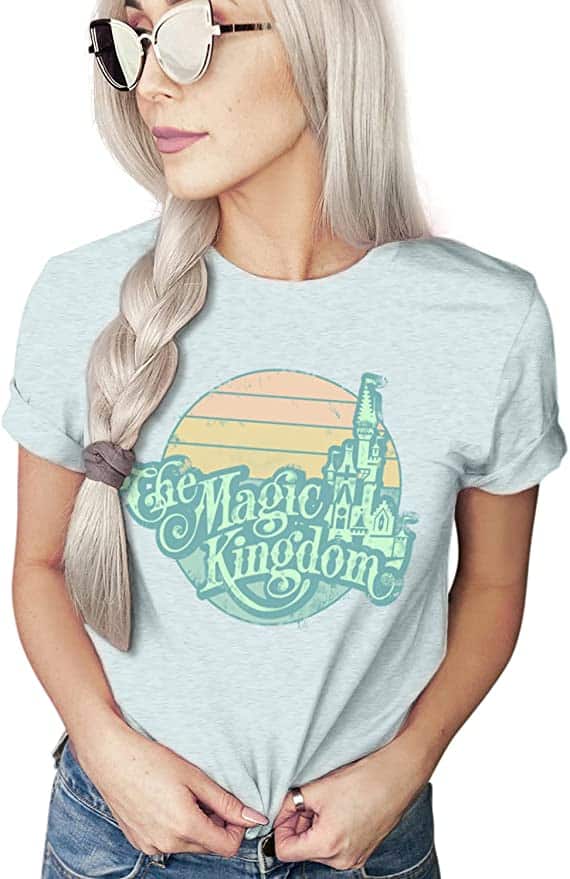 We adore this retro-style Magic Kingdom shirt. Available in six different colors and multiple sizes, this shirt lets you party like it’s 1971.