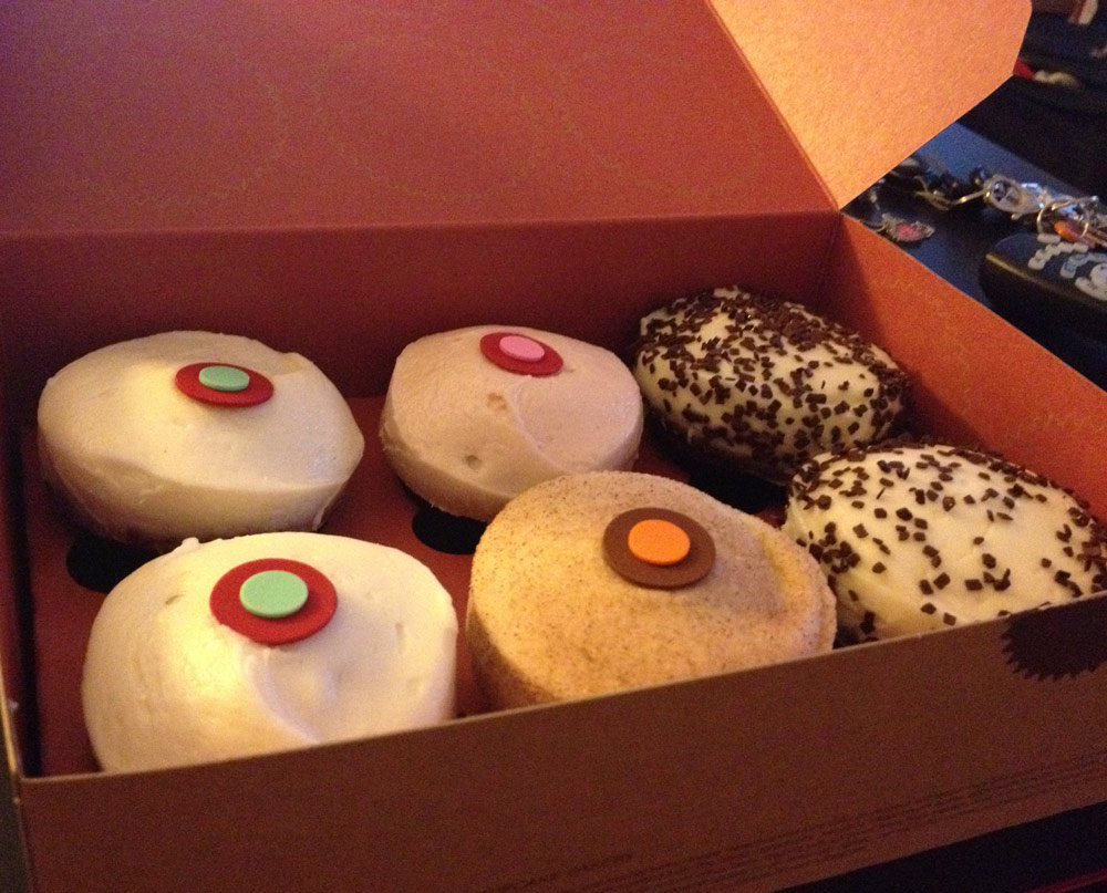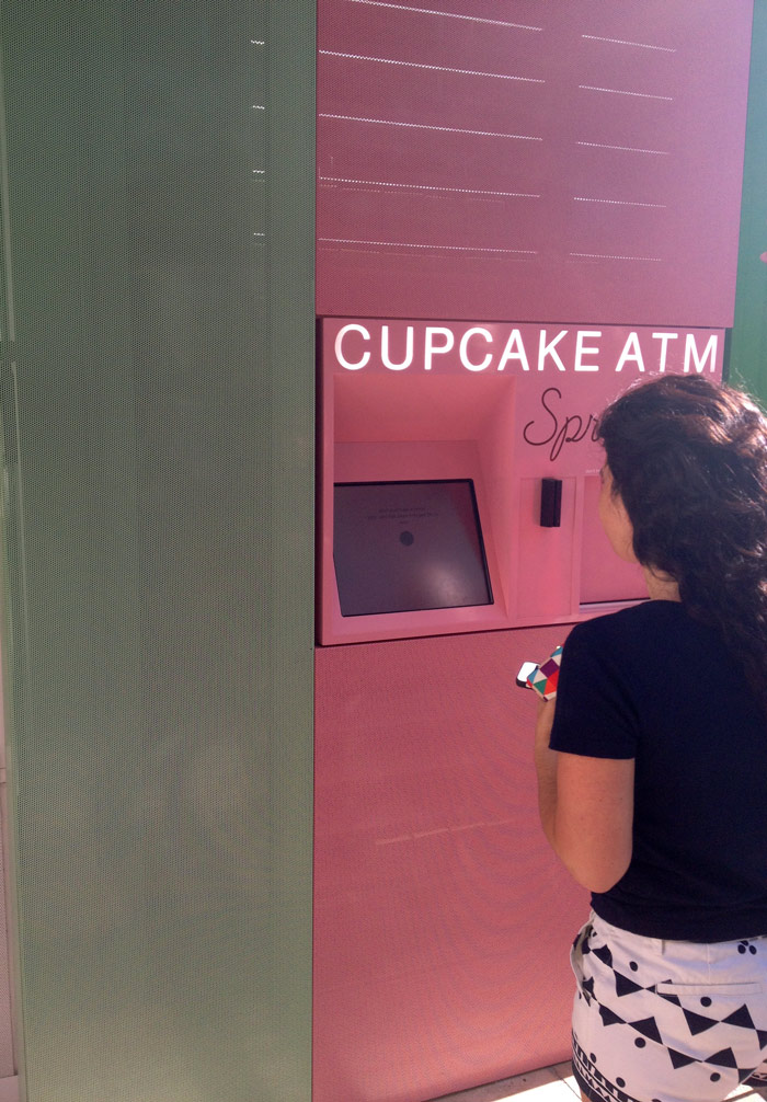 How does it work? Just select your cupcake from the touchscreen, and a robotic arm will retrieve your selection from the stock. There’s even a video feed so you can see the magic happen. The machine accepts credit or debit cards only. The Cupcake ATM is restocked throughout the day, including right before the bakery closes. Not only does the ATM help those out with a late-night cupcake craving, but I’ve found that the Cupcake ATM is a good way to go if the line in the bakery is long. Also, it’s just somewhat amusing to buy a cupcake from an ATM.