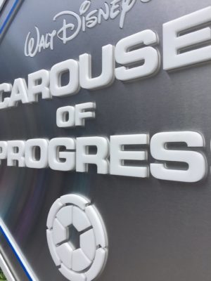Walt Disney’s Carousel of Progress will always hold a soft, rotating spot in my heart, so I was thrilled to see that Disney has installed a new sign for the show. Gone are the giant colorful cogs, replaced by a sleek, metallic sign that evokes the future while harkening to the past – a perfect metaphor for the entire Carousel of Progress show. This sign features the 1975 logo from when Carousel of Progress migrated from Tomorrowland in Disneyland to the Magic Kingdom. In fact, this sign feels like it could very well fit in at Future World, since the Carousel of Progress logo looks very similar to Epcot’s original set of Future World icons.